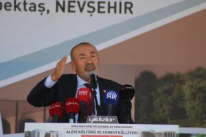 NEVŞEHİR(TRENDHABER)- Milliyetçi Hareket Partisi (MHP) Genel Başkanı Devlet Bahçeli’nin, Nevşehir’in Hacıbektaş ilçesinde bulunan ve bedelsiz olarak Horasan Erenleri Federasyonu’na hibe ettiği arsada yapılacak olan Cem ve Kültür Evi Külliyesi’nin temel atma töreni gerçekleştirildi. Törende konuşan MHP Genel Başkan Yardımcısı Yaşar Yıldırım, “Federasyon Başkanımız cem evinin adının Devlet Bahçeli olması için teklifte bulundu. Genel Başkanımız Devlet Bahçeli ‘Hayır’ dedi. ‘Adı Horasan Erenleri olacak. Bu siyaset üstüdür. Ben sizden oy istemiyorum. Halkıma gönül verdim. Ben sizden oy istemiyorum. Partime gönül verin, oy verin diye bu arsayı vermiyorum. Benim sizden bir isteğim vardır. O da Türkiye bütünlüğünün içinde kalın’ dedi ve bu merkezin adı orada konuldu” dedi.