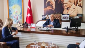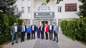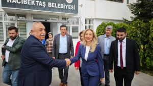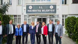 CHP Genel Başkan Yardımcısı  Aylin Nazlıaka ve beraberindeki heyet,   daha sonra Hacıbektaş Belediye Başkanı Ali Kaim’i makamında ziyaret ederek bir süre  görüştü. Başkan Kaim, ziyaretten dolayı CHP’li heyete teşekkür etti.