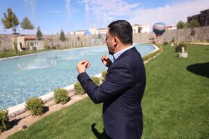 Nevşehir Belediye Başkanı Rasim Arı, Sosyal Belediyecilik anlayışı kapsamında Kapadokya’nın merkezi Nevşehir’e büyük değer katan ve Türkiye’de çok az konumda bulunan Kapadokya Su ve Işık Sahnesi Gösteri Havuzu’nu (Cappadocia Water – Light Stage) ziyaret etti. Şehrin bütün arterleri ve farklı mahallelerinde yol ve yaya kaldırımı yapımı, bakım ve onarımı, park yenileme, temizlik ve altyapı yenileme çalışmaları devam ederken şantiye alanına dönen Nevşehir’de Belediye ekipleri ve ilgili müdürlükler tarafından çalışmalar titizlikle yürütülüyor. Başkan Arı, gösteri havuzunun gündüz gösterimine katılarak ziyarete gelen vatandaşlarla ve birim sorumlularıyla sohbet etti.