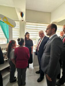 “Hayal Et-Tasarla- Resmet-Oyna” Sınıfının kurdelesini katılımcılar tarafından kesilirken daha sonra sınıf öğrencileri tarafından kısa bir etkinlik sunuldu.