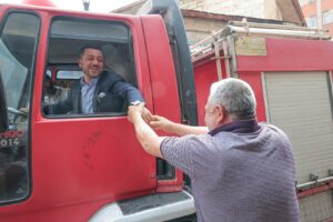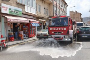 Yüzlerce kişiden belediye ekiplerinin çalışmalarını sürekli sahada kontrol eden Belediye Başkanı Rasim Arı, Kasaplar Çarşısı’nda bindiği itfaiye aracı ile yol yıkaması yaptı. Kendi kullandığı araç ile Belediye Caddesi’ne de giden Arı’yı direksiyon başında gören esnaf ve vatandaşlar Arı’yı tebrik etti.