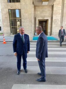 Nevşehir’de düzenlediği basın toplantısının ardından gerçekleştirilecek Vilayetler Birliği toplantısına katılmak üzere Ankara’ya gelen İl Genel Meclisi Başkanı Gürbüz Dinç, Türkiye Büyük Millet Meclisi girişinde Meclis başkanı Prof. Dr. Mustafa Şentop ile kısa bir görüşme yaptı.