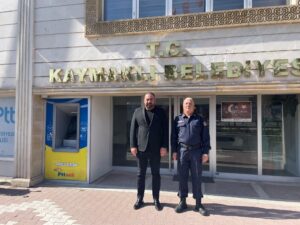 NEVŞEHİR(TRENDHABER)-Nevşehir İl Jandarma Komutanı Jandarma Kıdemli Albay Mehmet Çelik, Kaymaklı Belediye Başkanı Harun Çekiç’i makamında ziyaret ederek bir süre görüştü.