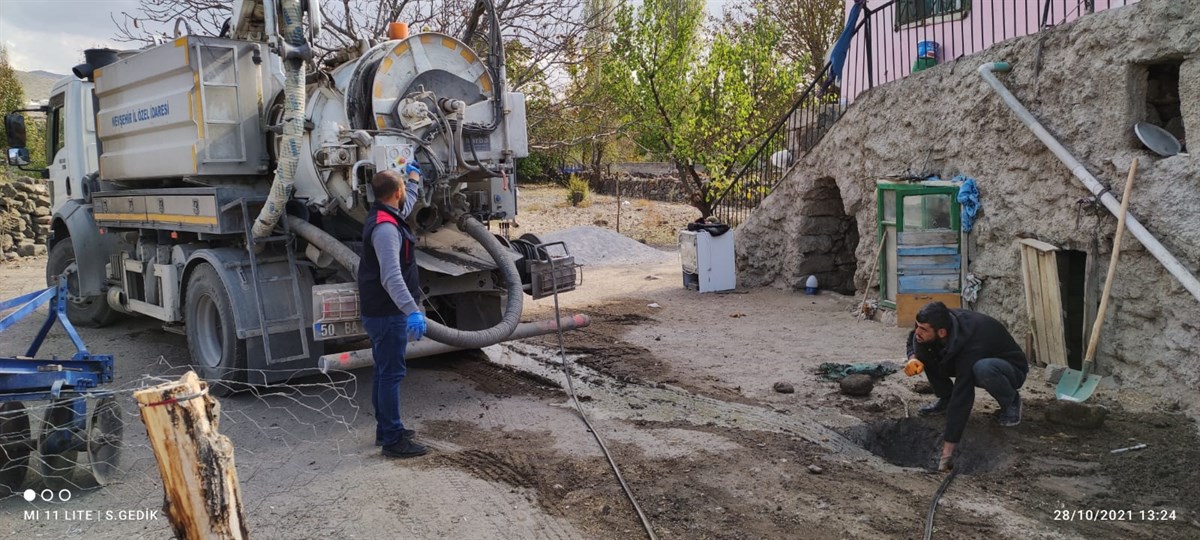 Gülşehir İlçesine bağlı Abuuşağı köyünün tıkanık olan kanalizasyon hatlarındaki arızalar giderilerek 11 evin foseptik kuyusunun çekimi yapıldı.