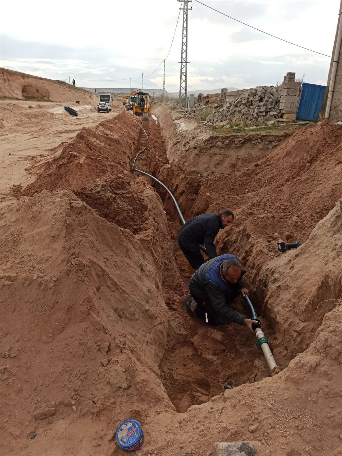 Gülşehir İlçesine bağlı Gülpınar köyünde ilave içme suyu hattı ve kanalizasyon hattı döşeme işlemleri devam etmektedir.