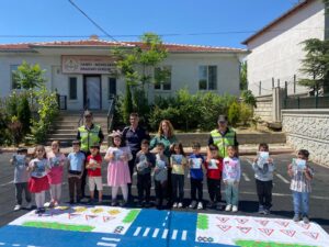 Ürgüp İl Jandarma Komutanlığı sorumluluk bölgesinde bulunan Hanife Memiş Aksoy Anaokulu öğrencilerine yönelik, eğitimde, genel trafik kuralları, trafiğin tanımı ve insan hayatındaki önemi, karşıdan karşıya geçme kuralları, yayaların hareket tarzları, okul taşıtlarında hareket tarzı, inme ve binme kuralı ve trafik dedektifleri ile ilgili eğitim verilerek, öğrencilere trafikle ilgili boyama kitabı dağıtıldı.