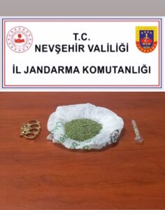 Öte yandan Gülşehir İlçe Jandarma Komutanlığı sorumluluk sahasında; 1 şahsın Üzerinde yapılan aramada; (1) adet uyuşturucu kullanma aparatı (Payp) ve 1 adet şeffaf poşet içerisinde 45 gr kubar esrar maddesi ele geçirildi.