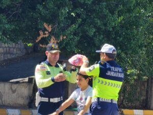 Nevşehir İl Jandarma Komutanlığınca kazaları, kaza sonrası ölüm ve yaralanmaları önlemek, geleceğimizin teminatı çocuklara trafik bilinci aşılamak amacıyla faaliyetlerimiz aralıksız olarak devam edecektir.”