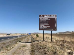 Kapadokya’da tarihi, kültürel ve doğal güzelliklerine ulaşımı kolaylaştırmak ve ziyaretçileri bilgilendirmek amacıyla yön ve bilgilendirme levhaları da takıldı. Nevşehir’in giriş, çıkış ve merkezi yerlerinde bulunan yön ve bilgilendirme levhaları sayesinde Kapadokya Jeoparkı’na gelen yerli ve yabancı turistlerin kentin tarihi ve turistik yerlerine daha rahat ulaşabilmesi amacıyla takılan levhalar, turizmin  hizmetine sunuldu.