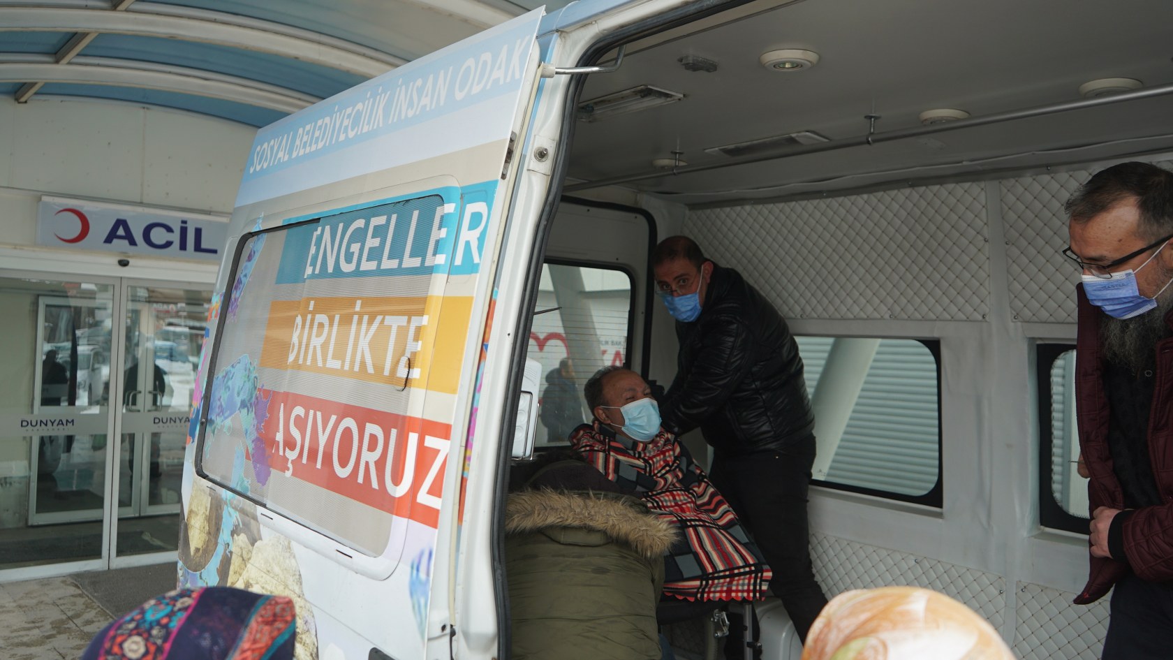 Ürgüp Belediyesi’nin engelli taşıma aracı ile Kayseri’ye götürülerek anjio yapılan Hamza Kardaş, tedavisinin tamamlanmasının ardından Ürgüp’teki evine getirildi.