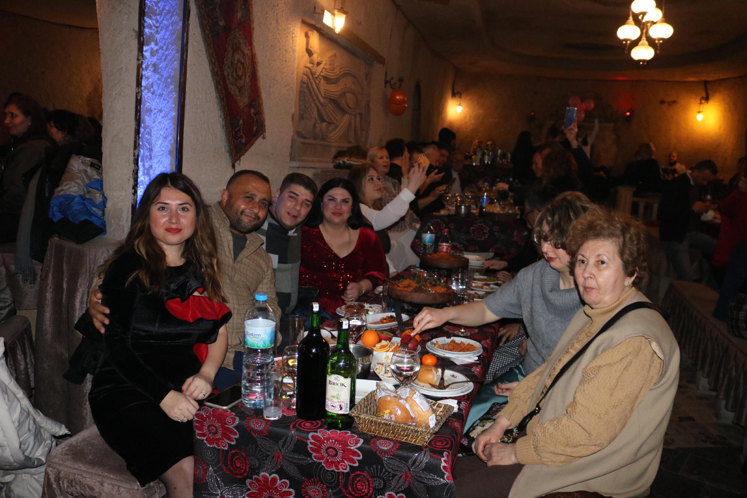Kapadokya Bölgesinde yerli ve yabancı turistlerin yılbaşı kutlamaları için en fazla ilgi gösterdiği mekanlar, volkanik tüfler içerisine oyularak yapılan yeraltı eğlence merkezleri oldu. 2022  yılını renkli görüntüler eşliğinde günün ilk ışıklarına kadar sürdü. Çılgınca eğlenerek, yerin 10 metre altında ‘Yaşar Baba “Restaurantı’ dolduran turistler yapılan yeni yıl kutlamalarını Oryantal Almina’ın kıvrak dansları eşliğinde geçirdi. Mangalda yakılan ateşin etrafında dans eden turistler, havai fişek gösterileriyle eğlendi.