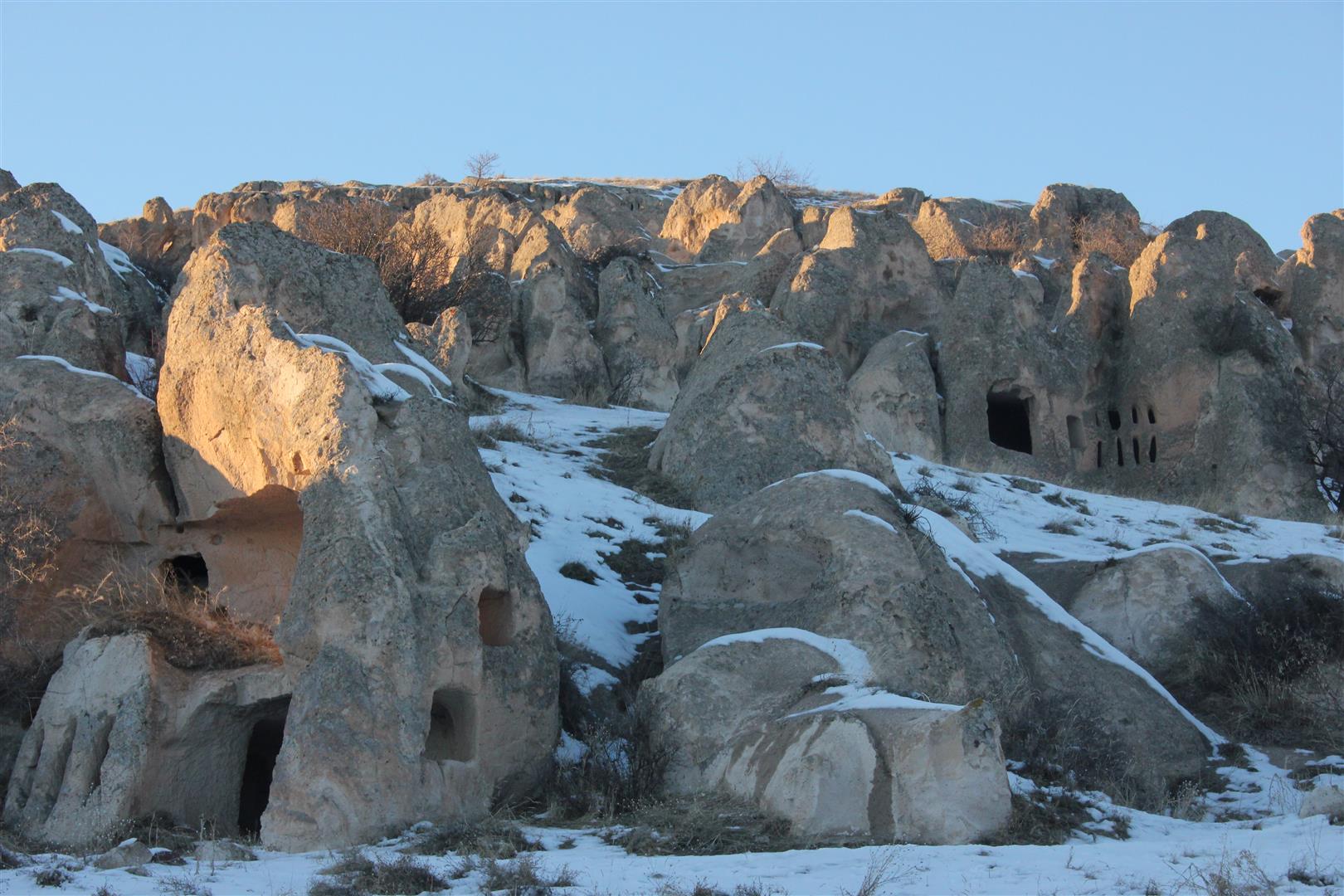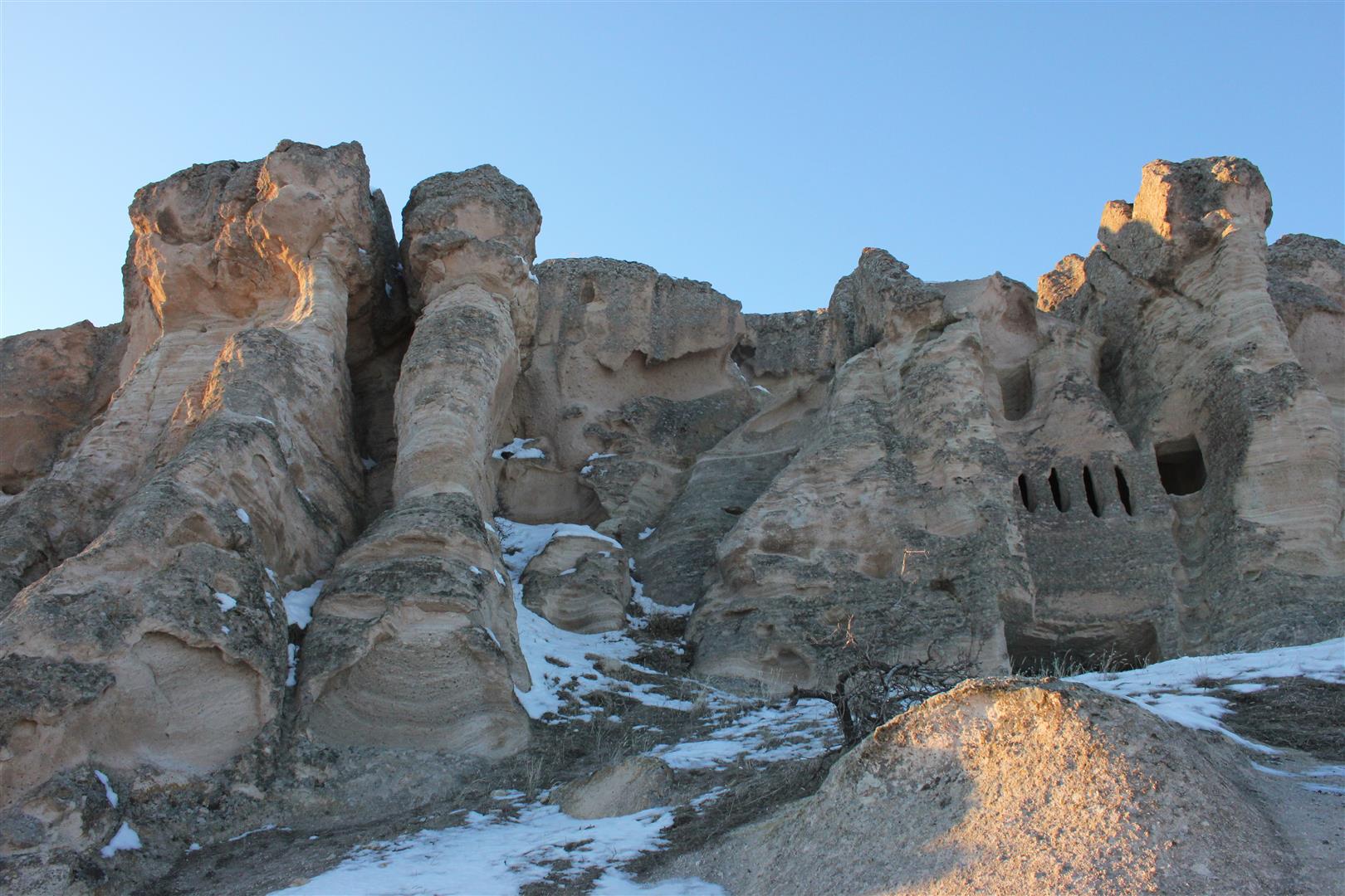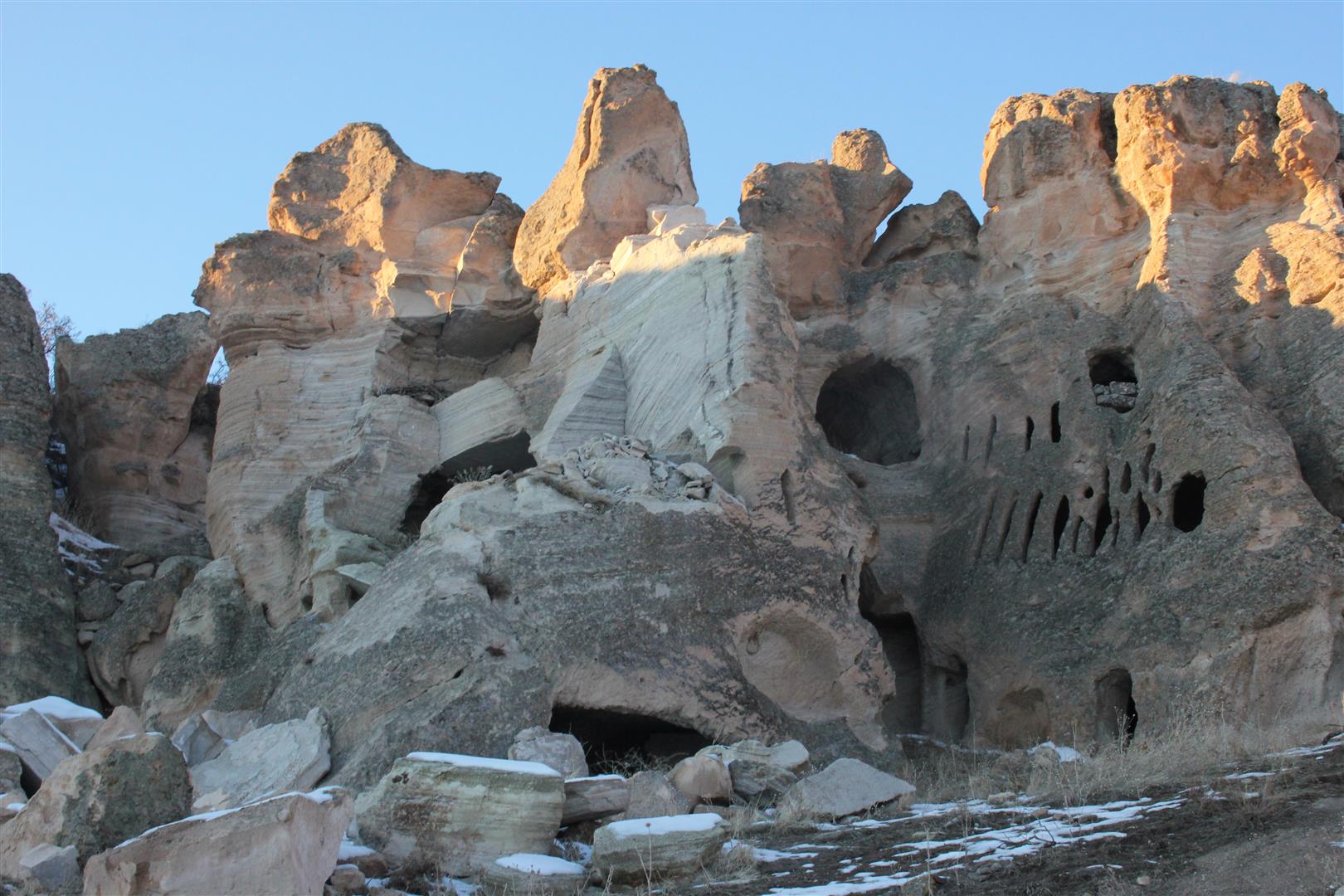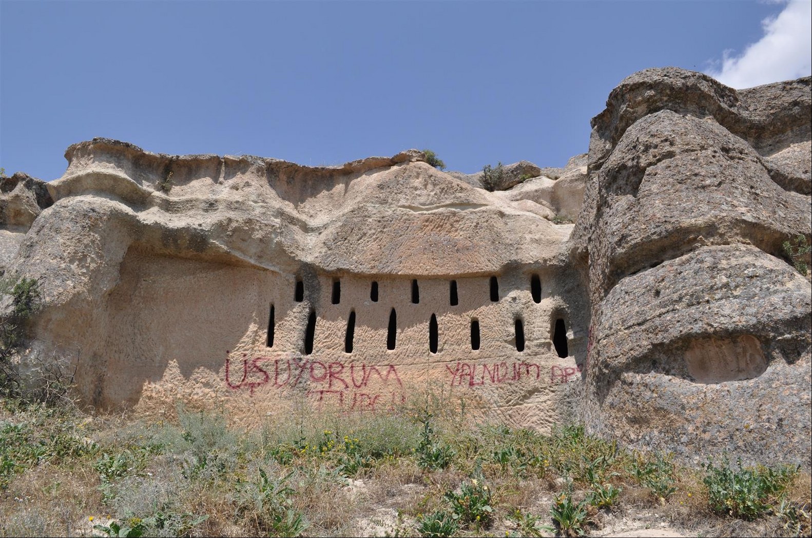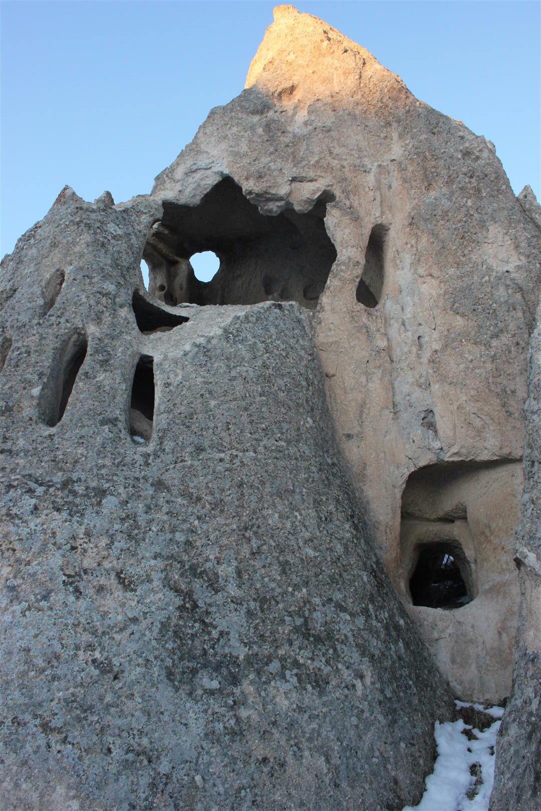 Yaklaşık 20 bin metrekarelik bir alanda ki bu alanda gözetim kulelerinin yanı sıra,ahır,kiler,mutfak ve değişik şekillerde tüf kayaların oyularak yapılmış ev yerleşimleri dikkatleri çekiyor.