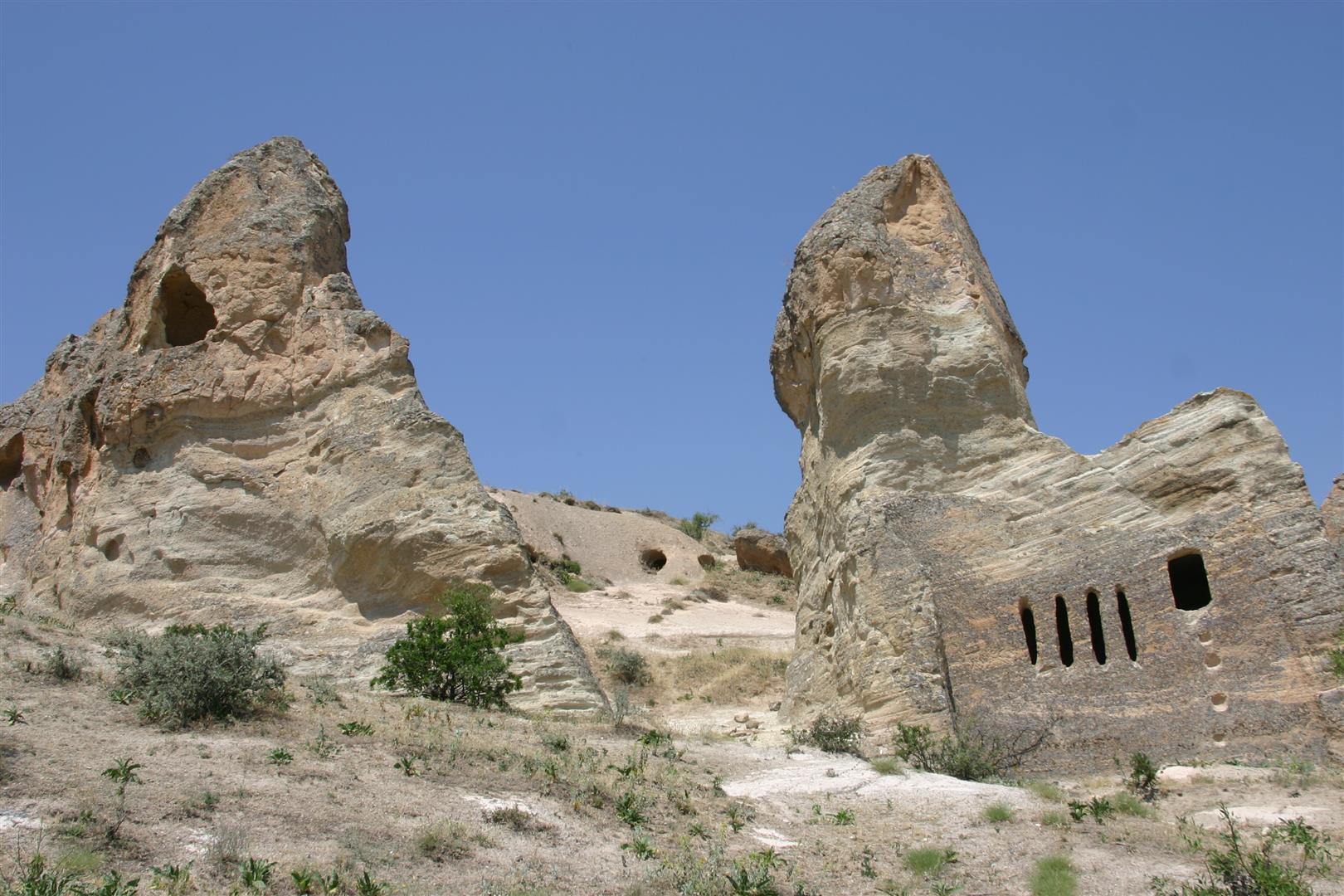 Yüksek tepe noktalara kurulu bulunan eski Bizans yerleşiminde bulunan yer altı kentlerini anımsatan görüntülerle oldukça farklı bir mimari tarzdaki yapılanmalar dikkat çekiyor.