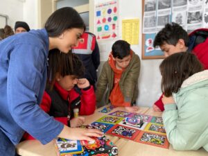 Nevşehir Belediyesi Gençlik ve Spor Hizmetleri Müdürlüğü son olarak Kapadokya Eğitim Merkezi (KAPEM) eğitmenleri, gönüllü eğitmenler ve Ortahisar Çocuklar Gülsün Derneği üyeleri ile birlikte Ortahisar’da bulunan Fatih Ortaokulu’nda, 7-12 yaş grubu depremzede öğrenciler için akıl-zeka oyunları ve resim atölyesi etkinliği yaptı. Etkinlikte, görevli eğitmenler ve gönüllüler eşliğinde resim ve boyama yaparak oyunlar oynayan çocuklar, bir nebze de olsa içinde bulundukları olumsuz psikolojiden kurtulma fırsatı elde etti.