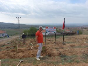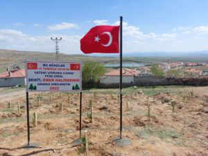 NEVŞEHİR(TRENDHABER)- Hacıbektaş ilçesine bağlı Karaburna köyünün 1990 lı yıllarda belde haline getirilmesi ile birlikte ilk kurucu  belediye başkanı olarak ard ardına 3dönem belediye başkanlığı yapan Yusuf Koçak, 15 Temmuz şehidi Jandarma Astsubay Çavöuş Ömer halisdemir anısına 100 ü aşkın fidan dikti. Karaburna köyünün Çamlıktepe su deposu yanında yaklaşık 1 dekarlık alanda çam fidanlarını toprakla buluşturan eski Başkan Yusuf Koçak, yeşil bir Karaburna oluşturma çalışmalarına katkı sağlamaktan da oldukça mutlu olduğunu belirtti.