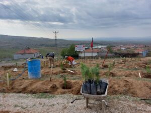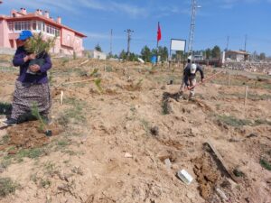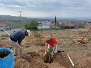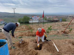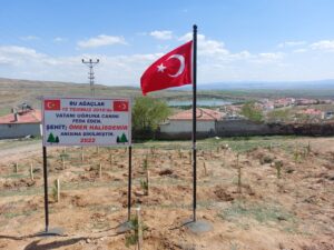 NEVŞEHİR(TRENDHABER)- Hacıbektaş ilçesine bağlı Karaburna köyünün 1990 lı yıllarda belde haline getirilmesi ile birlikte ilk kurucu  belediye başkanı olarak ard ardına 3dönem belediye başkanlığı yapan Yusuf Koçak, 15 Temmuz şehidi Jandarma Astsubay Çavöuş Ömer halisdemir anısına 100 ü aşkın fidan dikti. Karaburna köyünün Çamlıktepe su deposu yanında yaklaşık 1 dekarlık alanda çam fidanlarını toprakla buluşturan eski Başkan Yusuf Koçak, yeşil bir Karaburna oluşturma çalışmalarına katkı sağlamaktan da oldukça mutlu olduğunu belirtti.