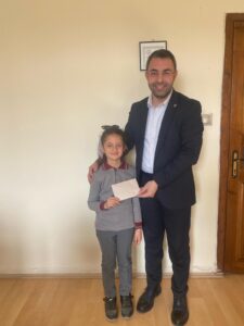NEVŞEHİR(TRENDHABER)- Karapınar Belediye Başkanı Yasin Güneş, iki ayrı yarışmada Nevşehir ve Acıgöl ilçe birinciliğini elde eden olan Karapınar İmam Hatip Ortaokul öğrencisi Afra Senem Soylu ve İstiklal Marşını Güzel Okuma Yarışması Acıgöl İlçe birincisi Karapınar İlkokulu Öğrencisi Hira Nur Gezen’i makamında kabul ederek, elde ettikleri bu başarıdan dolayı tebrik edip ödüllendirdi.