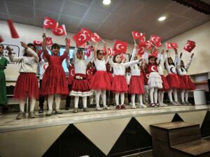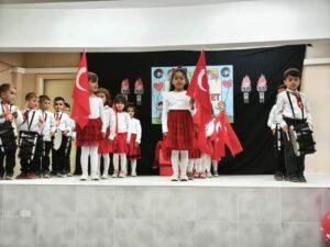 Karapınar İlkokulunda düzenlenen törenlerde Cumhuriyet Coşkusu Yaşandı.