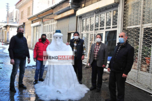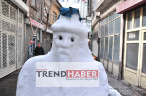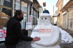 NEVŞEHİR (TREND HABER)- Nevşehir’de Ziya Toprakçı isimli esnaf, işletmesinin önünde kar yardımıyla Damat İbrahimpaşa’nın heykelini yaptı.