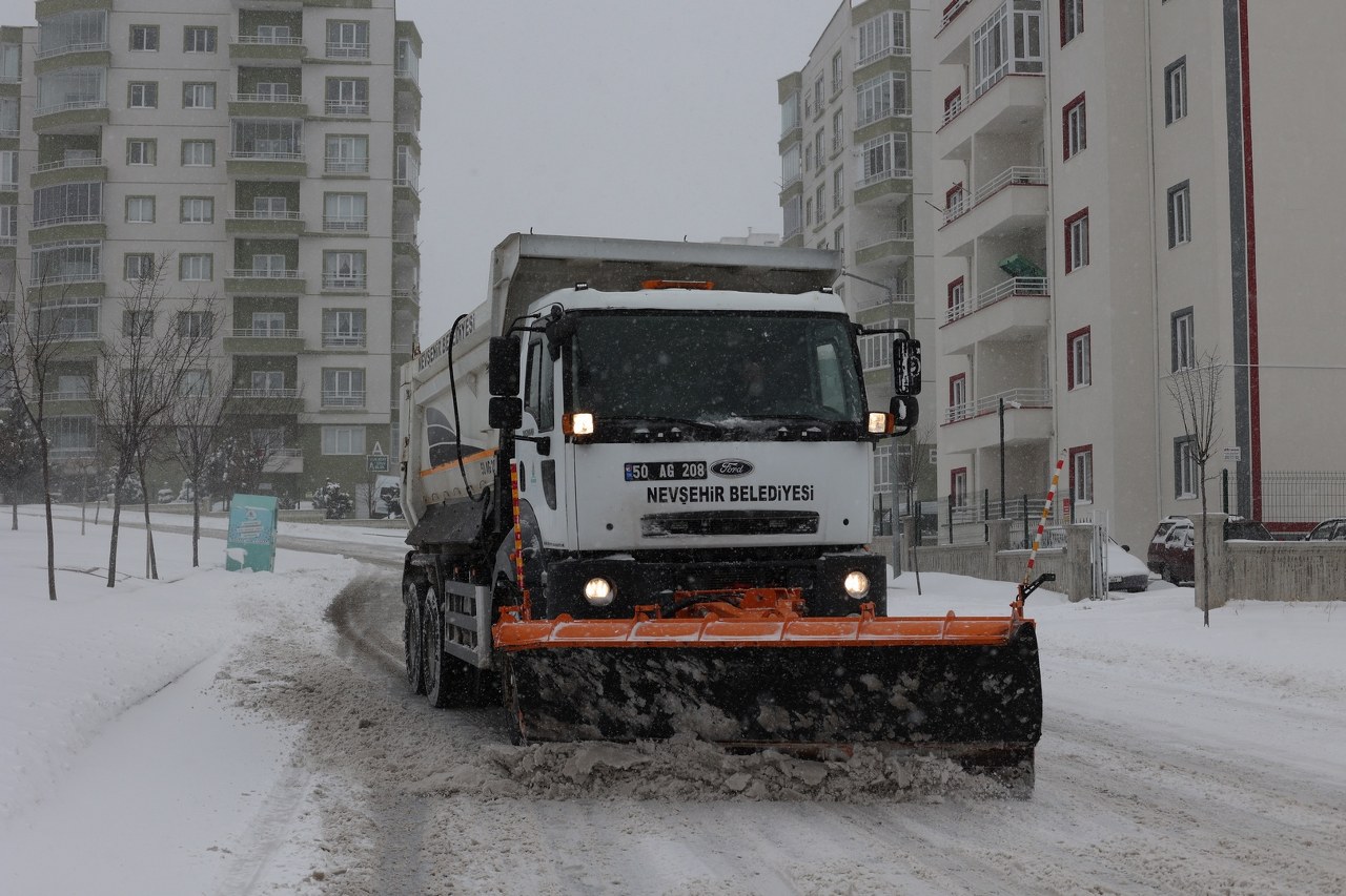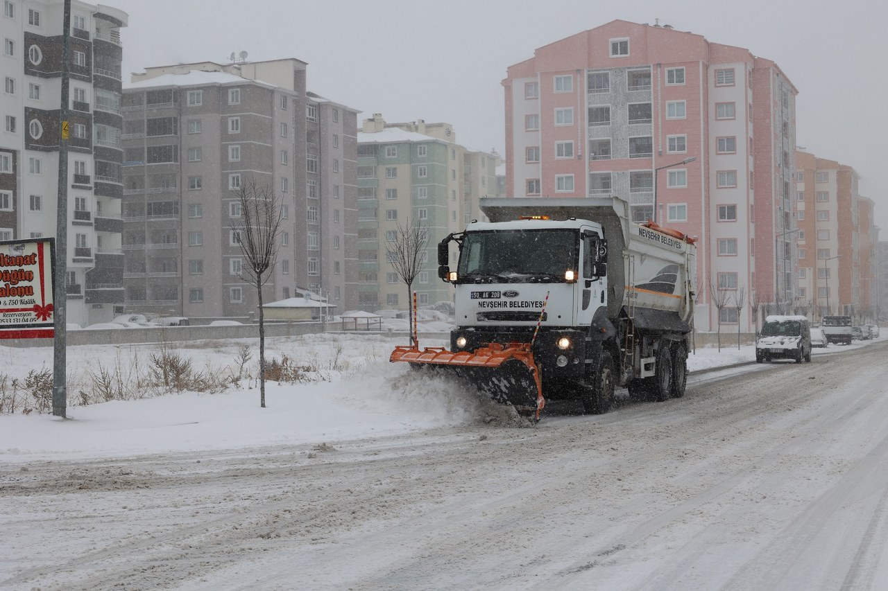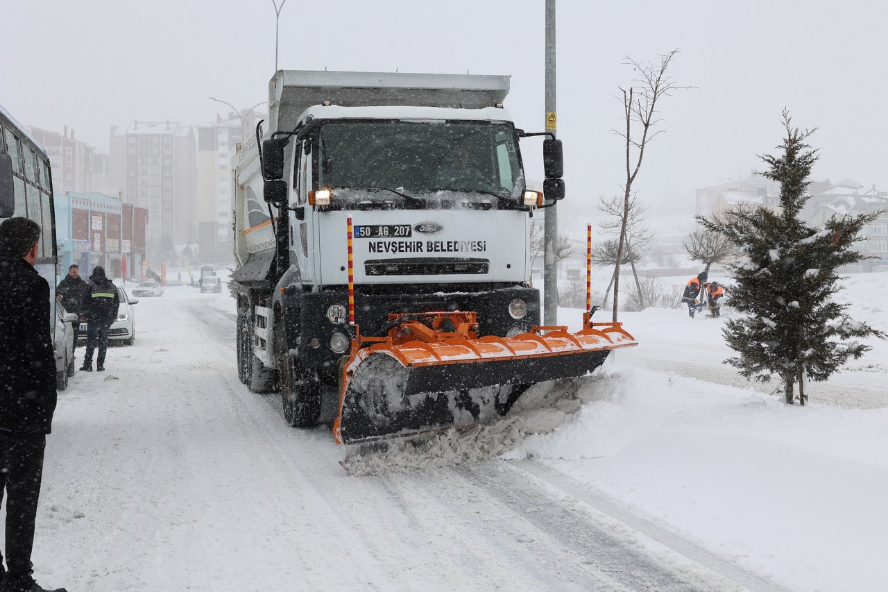 Nevşehir’de yoğun kar yağışı etkisinin sürdürürken kar kalınlığı şehir merkezinde 18 cm olarak ölçüldü. Akşam saatlerine kadar sürmesi beklenen yoğun kar yağışı dolayısıyla ulaşımda aksama yaşanmaması için Nevşehir Belediyesi günün ilk ışıkları ile birlikte karla mücadele çalışmalarına başladı.
