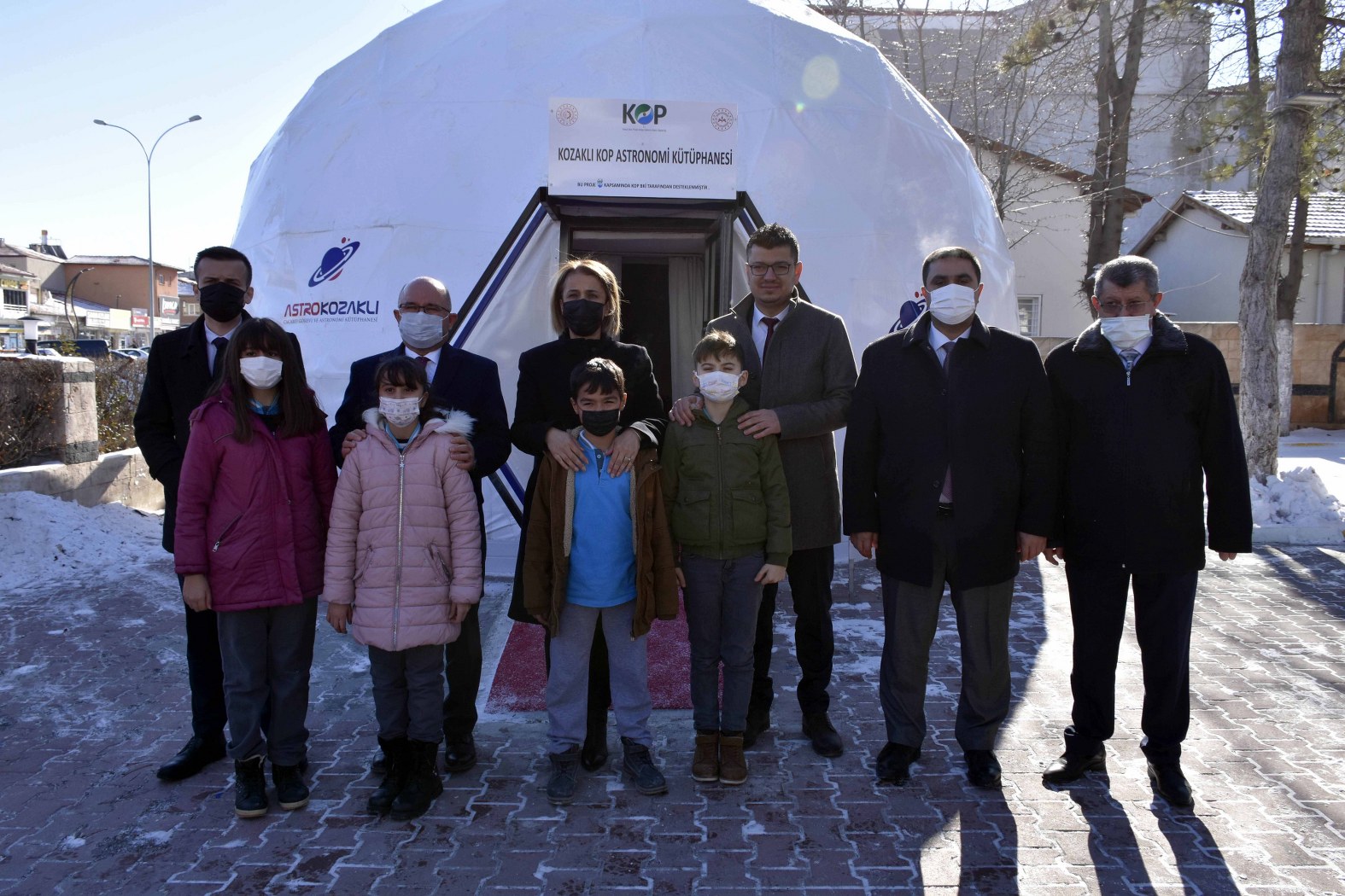 Açılış konuşmalarının ardından Vali Becel, KOP Başkanı Şahin ve Belediye Başkanı Kabukcuoğlu, ‘Kozaklı KOP Astronomi Kütüphanesi’nde incelemelerde bulundu. Planetaryum da ise öğrencilerle birlikte uzayın sırları belgeselini izlediler.