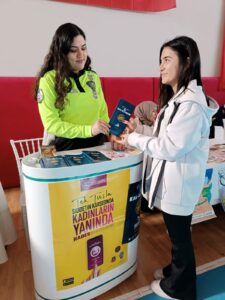 NEVŞEHİR(TRENDHABER)- Nevşehir’in Kozaklı ilçesinde polis ekipleri KADES uygulamaları konusunda Eğitime Destek Kermesine katılarak kadınlara bilgilendirmelerde bulundu.