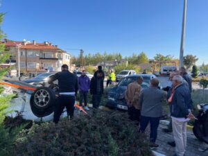 Alınan bilgilere göre, Millet Caddesi üzerinde Nevşehir Sanayisi yönüne seyir eden A.D.’nin kullandığı 50 BD 088 plakalı otomobil, aynı istikamette seyir eden H.Ç.’nin kullandığı araç Meteoroloji Müdürlüğü önündeki kavşağa gireceği sırada çarpıştı. Çarpışmanın hızı ile  H.Ç.’nin kullandığı otomobil refüje çıkarak  devrildi.