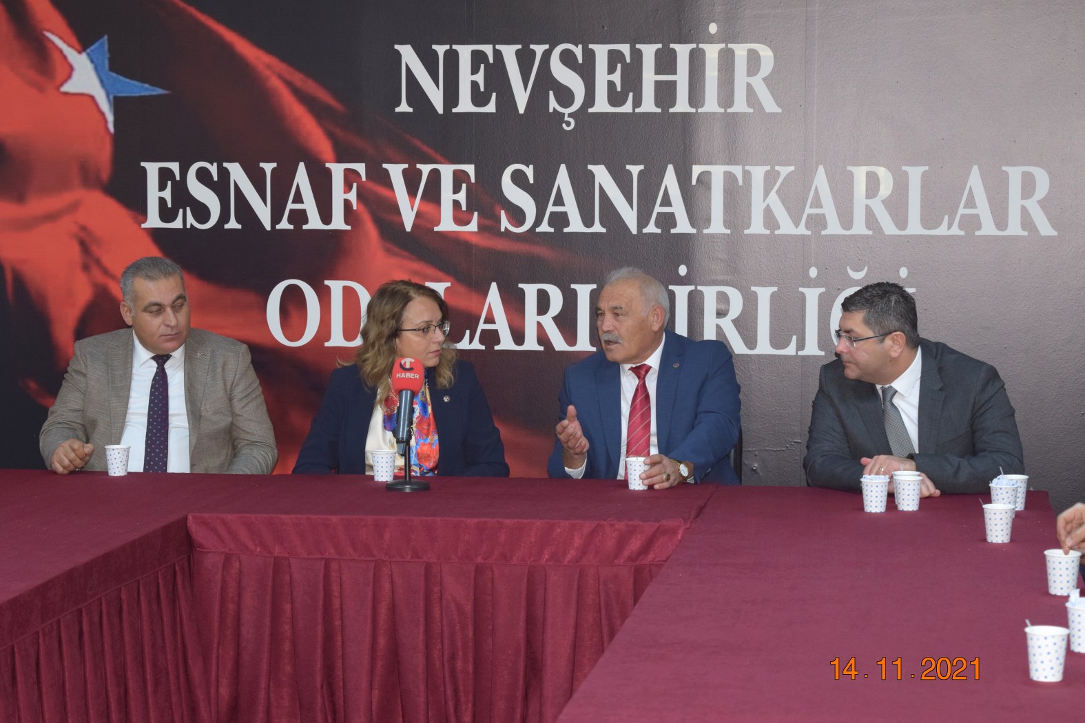 NEVŞEHİR(TRENDHABER)- Milliyetçi Hareket Partisi (MHP) Genel Başkan Yardımcısı Filiz Kılıç beraberinde parti MYK Üyeleri, İl Başkanı İlhan Kaya ve Parti Yönetim Kurulu Üyelerinden oluşan heyetle birlikte Nevşehir Esnaf ve Sanatkarlar Odaları Birliği Başkanı Mehmet Pınarbaşı’yı ziyaret etti.
