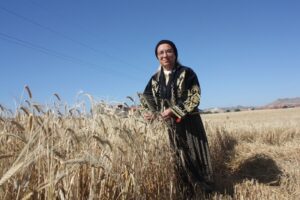 Yöre kadınlarının kıyafetlerini de giyerek arpa hasadı yapan  MHP Genel Başkan Yardımcısı Kılıç, hasadın bereketli olması temennisinde bulundu.