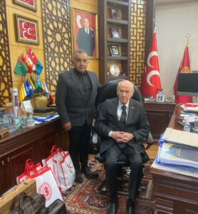 NEVŞEHİR(TRENDHABER)- Milliyetçi Hareket Partisi(MHP) İl Başkanı Adnan Doğu ile Başkan Yardımcısı Ali Ertosun, MHP Genel Başkanı Dr. Devlet Bahçeli’yi makamında ziyaret ederek istişarelerde bulundu.