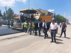Acıgöl Kaymakamı Alperen Celepçi’nin yanı sıra Acıgöl Belediye Başkanı Mehmet Eroğlu ve Tatlarin Belediye Başkanı Ercan Selvi’de , İlçe merkezinde devam eden sıcak asfalt çalışmalarını inceledi.