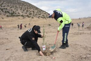 Fidan dikim alanında Nevşehir İl Emniyet Müdürlüğü, İl Jandarma Komutanlığı, Tarım ve Orman İl Müdürlüğü ve Sağlık Müdürlüğü ilgilileri de çalışanlarıyla birlikte fidanları toprakla buluşturdu.