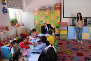 İl Müdürü Yazıcı, eğitim gören minik öğrencilerle yakından ilgilendi ve sınıf aktivitelerini izledi. Öğretmenlerle de bir araya gelerek fikir alışverişinde bulunan  Yazıcı; geleceğimizin teminatı olan çocukların mutluluğunun bizim için çok önemli olduğunu belirterek onların eğitimi için var güçleriyle çalıştıklarını ve öğrencilere hizmet etmekten gurur duyduklarını dile getirdi.