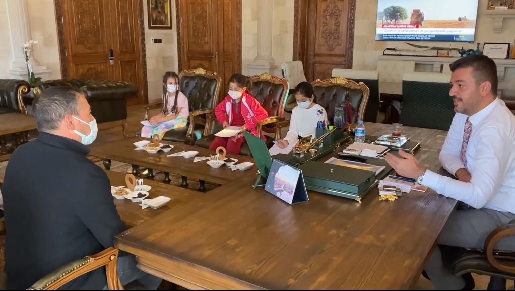 NEVŞEHİR(TRENDHABER)- Ürgüp Belediye Başkanı Mehmet Aktürk, makamında kabul ettiği minik öğrencilerin beslenme başta olmak üzere ilçe genelindeki temizlik ve hizmetlere ilişkin sorularını cevaplandırdı.