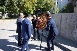NEVŞEHİR(TRENDHABER)- 19 Ekim Muhtarlar Günü dolayısıyla Nevşehir Muhtarlar Derneği Başkanı Hüseyin Altınışık başkanlığında muhtarlar heyeti, Atatürk Anıtına çelenk sundu.