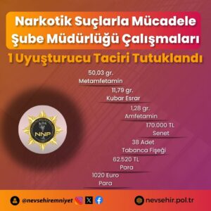 NEVŞEHİR(TRENDHABER)- Nevşehir Emniyet Müdürlüğü Narkotik Şube ekipleri tarafından son 1 hafta içerisinde uyuşturucu ile mücadele çalışmaları kapsamında meydana gelen 18 olayla ilgili olarak 31 kişi hakkında işlem yapıldı. Bu şahıslardan 1 kişi tutuklanırken,diğer 1 şahıs hakkında da adli kontrol kararı verildi.