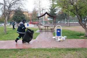 Sabah erken saatlerde Zeki Soyak Parkı önünde toplanan Temizlik İşleri Müdürlüğü, Park ve Bahçeler Müdürlüğü, Su ve Kanalizasyon Müdürlüğü, Muhtarlık İşleri Müdürlüğü, İtfaiye Müdürlüğü ve Fen İşleri Müdürlüğü ekipleri, park ve bahçelerin yanı sıra cadde ve sokaklarda detaylı bir temizlik çalışması yaptı.