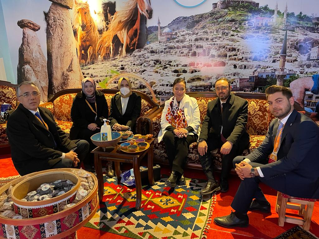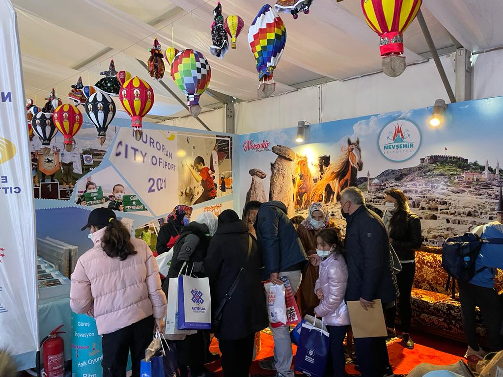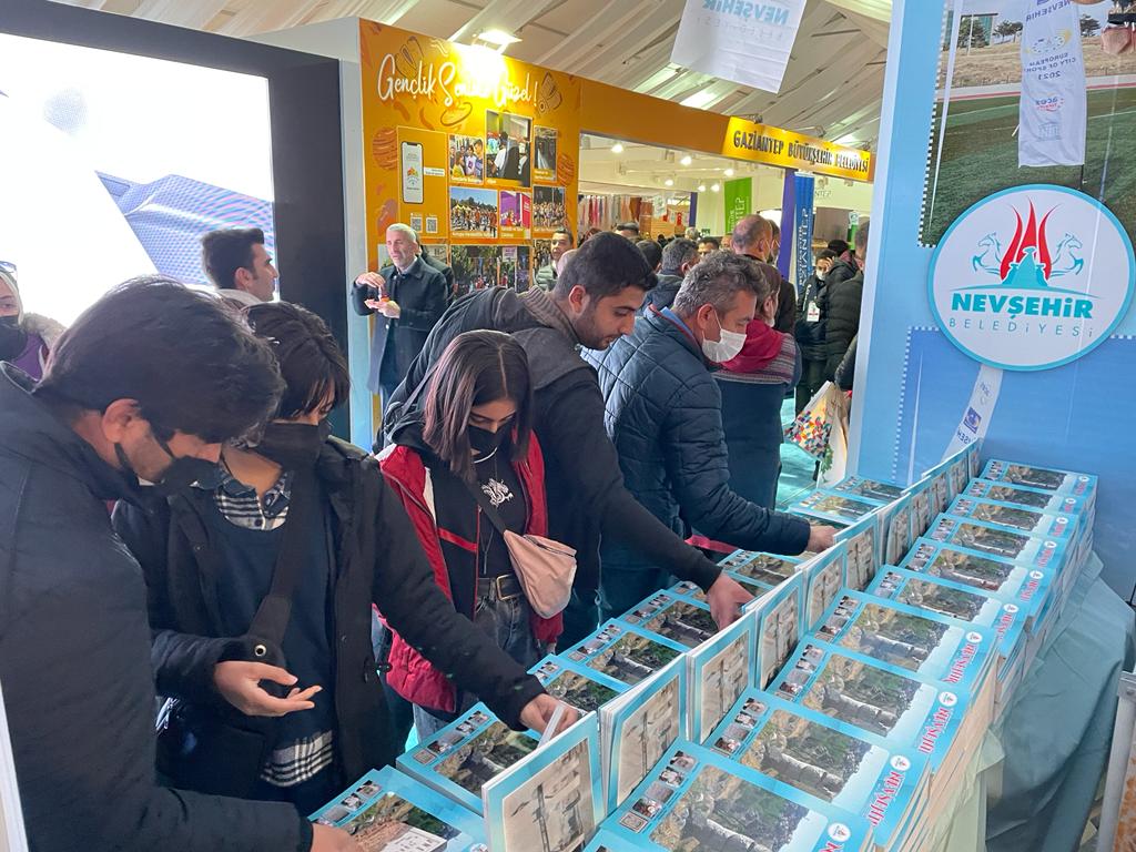 Kapadokya bölgesinin merkezi Nevşehir’den görsellerin ve yöresel el sanatları ürünlerinin yer aldığı stantta ziyaretçilere Nevşehir Belediyesi Kültür ve Sosyal İşler Müdürlüğü ve Gençlik Hizmetleri Müdürlüğü görevlilerince köftür, kabak çekirdeği ve kuru üzüm gibi yöresel ürünler de ikram edildi.