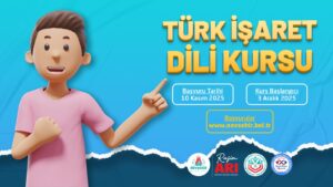 Türk İşaret Dili Kursu; Kurs 03 Aralık 2025 tarihinde başlayıp 29 Ocak 2026 tarihinde tamamlanacak. Kurs Çarşamba, Perşembe ve Cuma günleri 13.00 – 16.00 saatleri arasında yapılacak.
