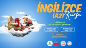 İngilizce A2 Kursu; Kurs 01 Aralık 2025 tarihinde başlayıp 10 Şubat 2026 tarihinde tamamlanacak. MEB Onaylı A1 Sertifikası olanların ön başvuru yapabildiği kurs Pazartesi, Salı ve Çarşamba günleri 09.00 – 13.00 saatleri arasında yapılacak.