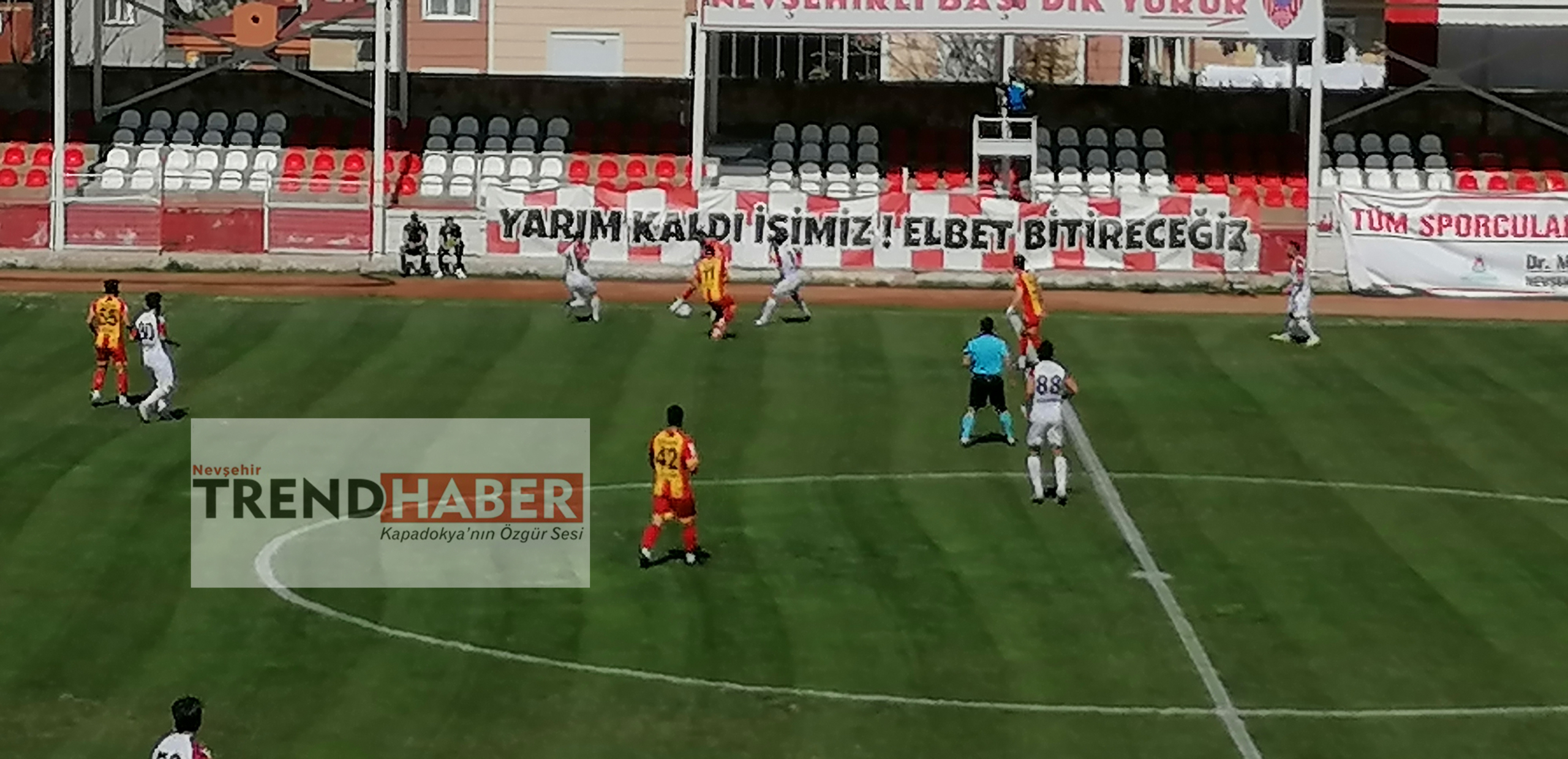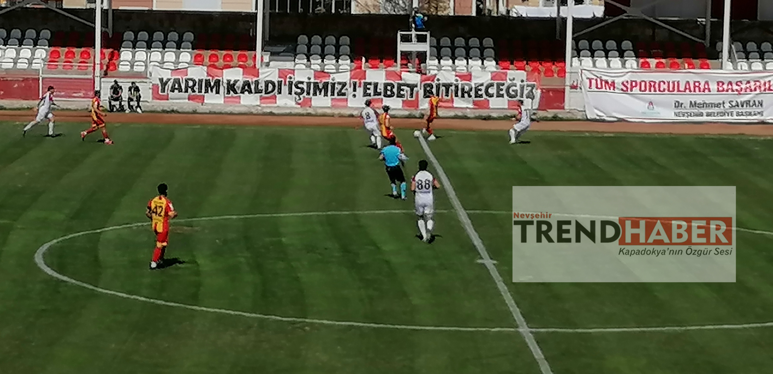 NEVŞEHİR (TREND HABER) – Misli.com 3. Lig 1. Grupta Bu haftanın önemli maçlarından biri olan, Nevşehir Belediyespor -Kızılcabölükspor maçı saat 15.00’da Gazi Stadında Başladı. Maçın İlk 45 dakikası golsüz bitti. Maçın ikinci devresinde Nevşehir Belediyespor Her ne kadar Kızılcabölükspor kalesini zorlasa da Kızılcabölükspor kalecisi Asil Kaan kalede oldukça başarılıydı. Maç golsüz bir şekilde iki tarafın beraberliğiyle bitti. Nevşehir Belediyespor maçtan 1 puan aldı.