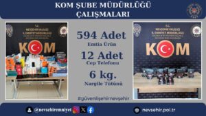 Alınan bilgilere göre, Nevşehir Emniyet Müdürlüğü  Kaçakçılık ve Organize Suçlarla Mücadele Şube Müdürlüğü ekipleri , gümrük kaçağı 594 adet emtia ürün, 12 adet cep telefonu, 6 kg. bandrolsüz nargile tütünü ele geçirdi.