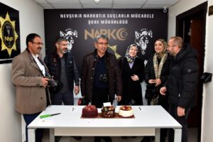 Operasyon görüntülerini çekmek için Nevşehir Emniyet Müdürlüğü’ne gelen gazeteciler , bu hoş sürpriz sonrasında Nevşehir Emniyet Müdürü Ali Loğoğlu ve İl Emniyet Müdür Yardımcısı Serdar Bayraktar,