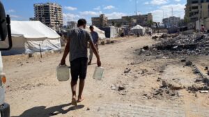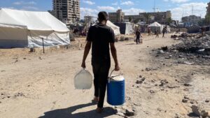 Nevşehir’de İHH tarafından başlatılan yardım kampanyası çerçevesinde geçen hafta gıda malzemelerinin dağıtıldığı Gazze’ye su ulaştırılıyor.