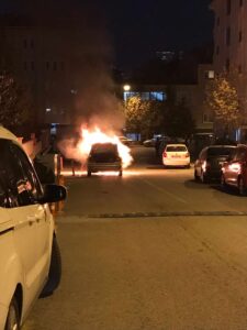 Aracın yanmaya başladığı anlarda bir vatandaşın cep telefonundan çektiği fotoğraf, araç yangının boyutunu gözler önüne serdi.