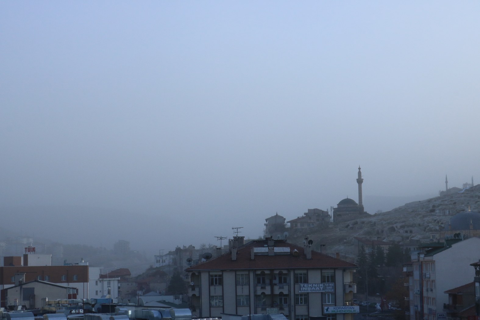 Şehir merkezinde şiddetli rüzgar özellikle civarda hafriyat çalışmalarının yapıldığı alanlardan aldığı toprak yığınlarını toz bulutuna çevirerek şehri TOZBULUTU içerisindeki bir yerleşim merkezine dönüştürdü.