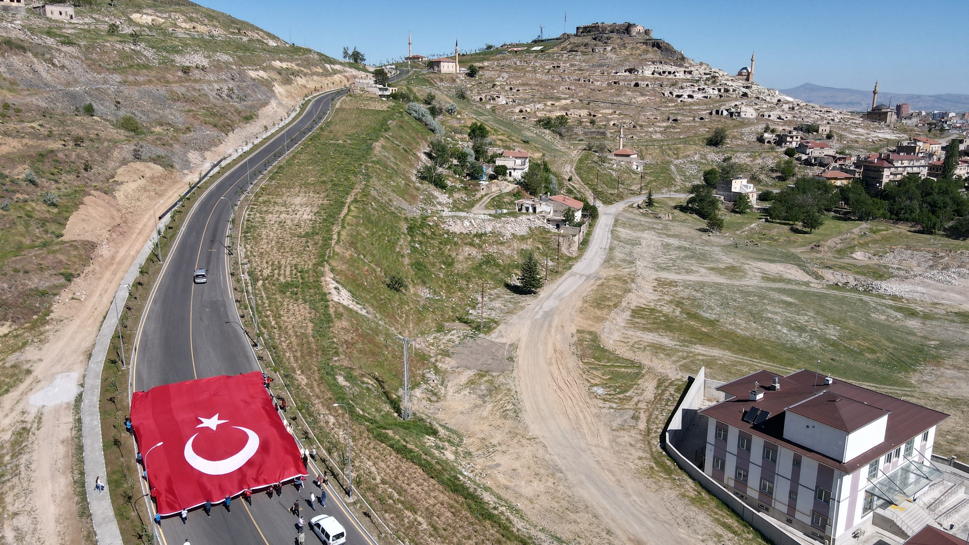 NEVŞEHİR (TREND HABER) – Nevşehir’de, 19 Mayıs Atatürk’ü Anma, Gençlik ve Spor Bayramı kutlamaları kapsamında, gençlerin taşıdığı dev bayrak tarihi Nevşehir Kalesi’nde dalgalandırıldı.