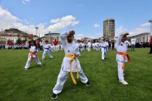 Gençlik ve Spor İl Müdürü Muhsin Özdemir’in konuşmasının ardından, çeşitli kurslarda eğitim alan öğrencilerin karate, jimnastik, tekvando gösterisi sunduğu programda, zeybek ekibi sahne aldı.