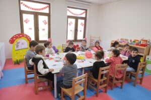 Çocuk oyun alanında çocuk gelişimci personeli ile birlikte 4-8 yaş arası çocuklara yönelik yapılan kutlama etkinliklerine 14 çocuk katılırken etkinlik “Cumhuriyet Ruhunu Yaşatmak” mottosuyla gerçekleştirildi.