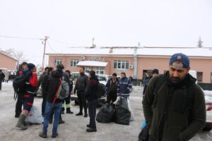 Yaklaşık 300 kişilik gönüllü çalışma ekibi, otobüslerle bölgedeki illere gönderildi.